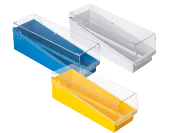 Slide boxes are ideal for laboratories as these not only ensure long-term storage of slides containing biosamples such as blood serum (DNA, mRNA, proteins) and urine but also make slide transport easier.
