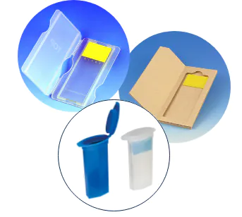 Flip-Top Plastic Slide Mailers and Plastic Slide Mailers, both by Globe Scientific, are made with a thermoplastic polymer, making these highly resistant to wear. Their slim design is incredibly useful for saving valuable space, as these have available inner slots for storing single or multiple slides securely. Moreover, models such as Globe Scientific’s Red Screw Cap Plastic 4-Place Slide Mailers offer additional user-convenience with easy-to-open tabs.