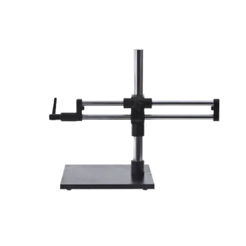 There are several general microscope stand designs. Many of these make use of a large, sturdy base, designed to rest on a table or desk, with a single pole or arm for mounting your microscope. Most of these mounting points are static, though some may pivot as much as 30 degrees. Other designs with more versatility include the boom or arm stand, where the scope is mounted to an articulated arm. These models often make use of a table clamp instead of using a solid base in order to provide a secure grip.