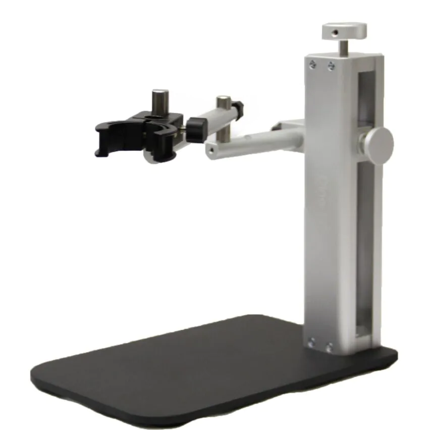 The stand is constructed of durable and lightweight machined aluminum with a stain-resistant finish, making it an ideal choice for lab work, pcb inspections and industrial assembly line quality check stations.