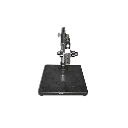 The Model S-4200 single-arm boom stand is one of our favorites. Well-designed with a compact 265mm x 265mm (10.4") footprint, it features 530mm (20.8") of horizontal reach and 610mm (24") of height, it is comfortable to use with beveled corners and a tall post which can accept specimens up to 500mm in size.