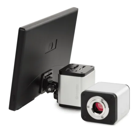 The HD1500TM is our full featured 6 MP camera with a 1/3” CMOS chip and 11.6" screen. A 0.3X C” mount adapter (MA151/35/03) is needed to attach it to any standard Meiji Techno America Trinocular Microscope. The HD1500T features a full HD (1080x1920) resolution, which provides high fidelity images with a refresh rate of 60fps- frames per second when connected via HDMI, so there is absolutely no lag in the live video feed when moving your specimen or part.