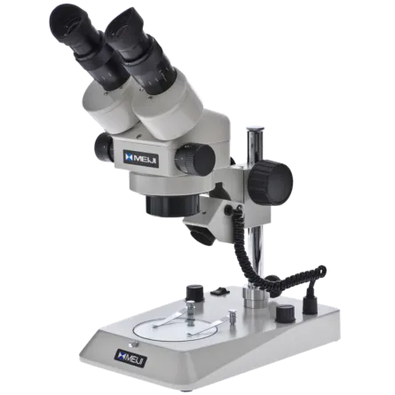EMZ-200 BINOCULAR - EMZ-10B zoom binocular microscope body, MA520 SWF 12.5X Eyepieces, MA558 0.44X Barlow Lens W.D. 250mm, PKL-1/310 Stand with 5W LED incident illumination, Reversible B/W stage plate with 2 stage clips.
