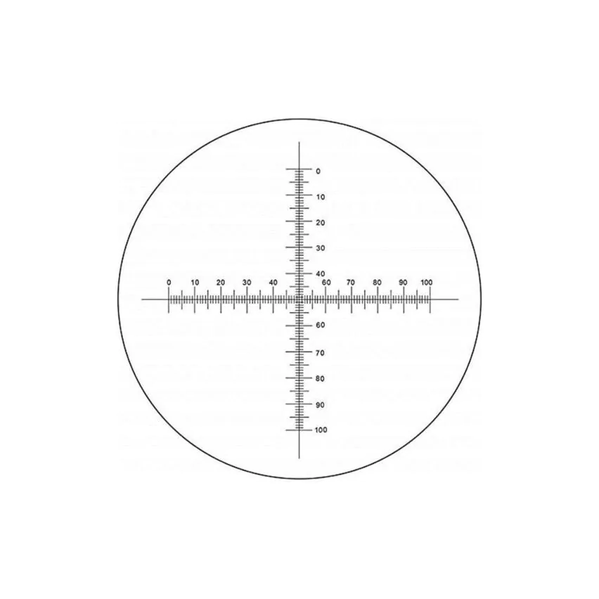 Cross-line reticle with 0.1mm graduations, 25mm diameter, fits MA503, MA520, MA504, MA519, MA730, MA817 eyepieces.