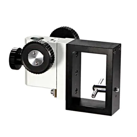 The hard-coated rotating stage is 160mm in diameter and features ball bearings for smooth rotation through 360 degrees, with 1-degree graduations for quick, precise orientation and reference. Focusing includes concentric coarse/fine control knobs operating machined rack and pinion gearing for smooth, controlled movement. Safety features include a rack-stop to prevent damage to the objective or slide, and a slip clutch to minimize the risk of damage due to over-extension.