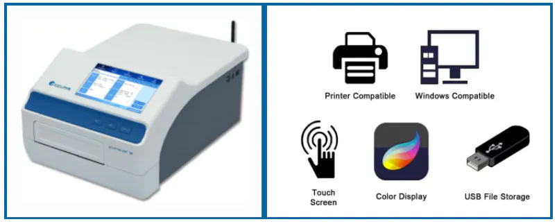 - Operates as a stand alone system, with USB flash drive drive for data transfer