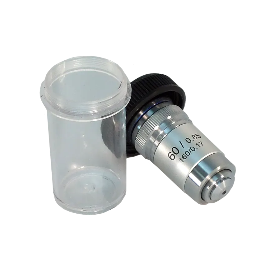 60x Achromatic, Spring, DIN compatible objective for compound microscopes.
