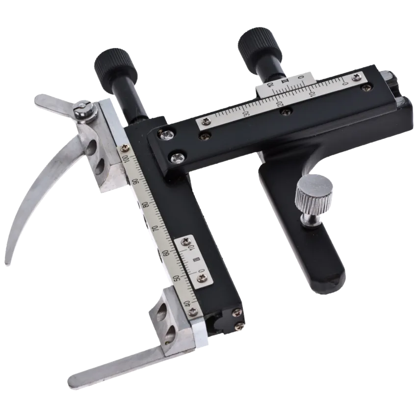 The slide holder on a microscope is an important component for observing specimens by holding your slides secure and steady during observation. Ergonomic knobs on this microscope slide holder allow for fine-tuning the position of your specimen while graduated measurements along both X/Y axis provide precise location settings for reference. Simply place your slide in position, secure it with the spring retaining arm and enjoy smooth, positive movement along the entire 57mm x 32mm travel in the X-Y axis.