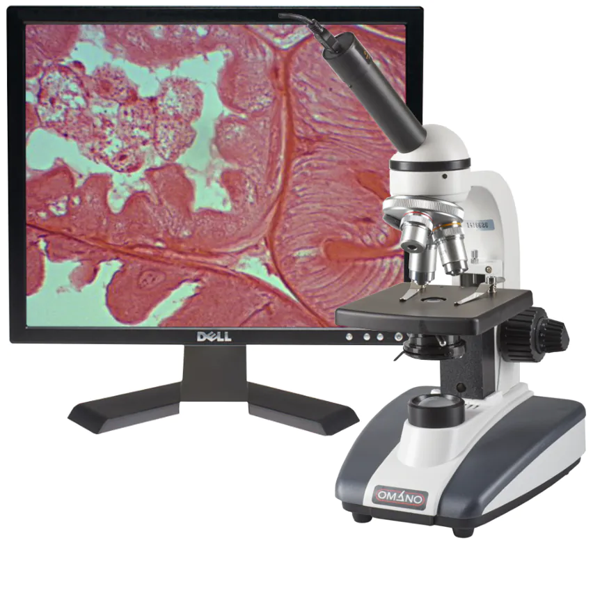 This special offer combines our most popular Omano OM136 monocular microscope and our easy-to-use Optixcam Summit Series KK3 1.3MP digital camera, into an affordable and versatile digital microscopy lab, ideal for the home school or classroom setting. With better design and construction than the OM118 series, it is a microscope that will last a lifetime and accordingly, carries an Omano lifetime limited warranty. Features include professional halogen or rechargeable LED illumination, three fully coated achromatic objective lenses, and an Abbe 1.25 N.A condenser with iris diaphragm.