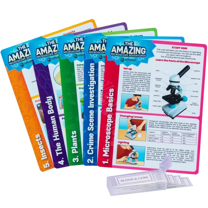 Microscope Experiment Cards are, in our opinion, a wonderful and colorful introduction to microscopy. Practical, clearly worded and illustrated, it provides numerous experiments and activities that range from simple to more complex. While many assume the cards are aimed at children, we have found it to be an useful primer for both young and old alike. We highly recommend it.