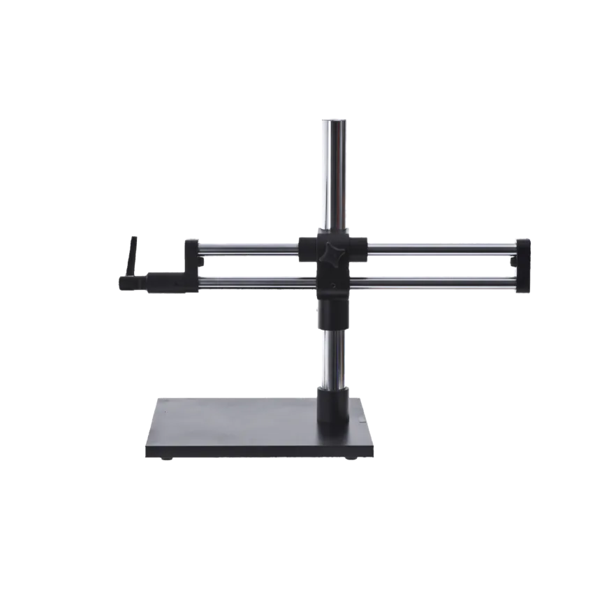 The V15 is our premium stand, characterized by 'continuous glide', ball-bearing motion for effortless repositioning, perfect for electronics and circuit board inspection. The boom has dual horizontal arms of solid metal alloy and measures 28 inches when extended (including the hanging bar).It also includes several thoughtful features not seen on comparable products. A solid metal hanging bar bracket allows unlimited tilting angles of the microscope head. The counter-weight is mounted with a rubber back stop to protect the bearing housing. A neat, spring-loaded adjustment lever on the hanging bar bracket enables the lever to be moved out of the way without releasing the pre-set position of the microscope head.