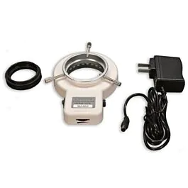 Illuminators manufactured by Meiji Techno Microscopes deliver precision, durability, and innovation for microscopy and video inspection. The flagship FR-LED ring illuminator is fully dimmable from 0 to 100 percent through an integrated side switch and requires no desktop control box, helping keep your bench uncluttered. Meiji’s exclusive heat management and rapid thermal transfer technology cool nine LEDs for superior light output, supported by a five-year or 50,000-hour warranty and replaceable LED chips that help lower lifetime costs. An auto-switching 100 to 240 volt power supply with worldwide approvals adds effortless compatibility. Browse models, compare features, and find the right fit for your scope at Microscope.com. Illuminate your workflow with confidence using engineered quality that lasts and performs when clarity matters most.